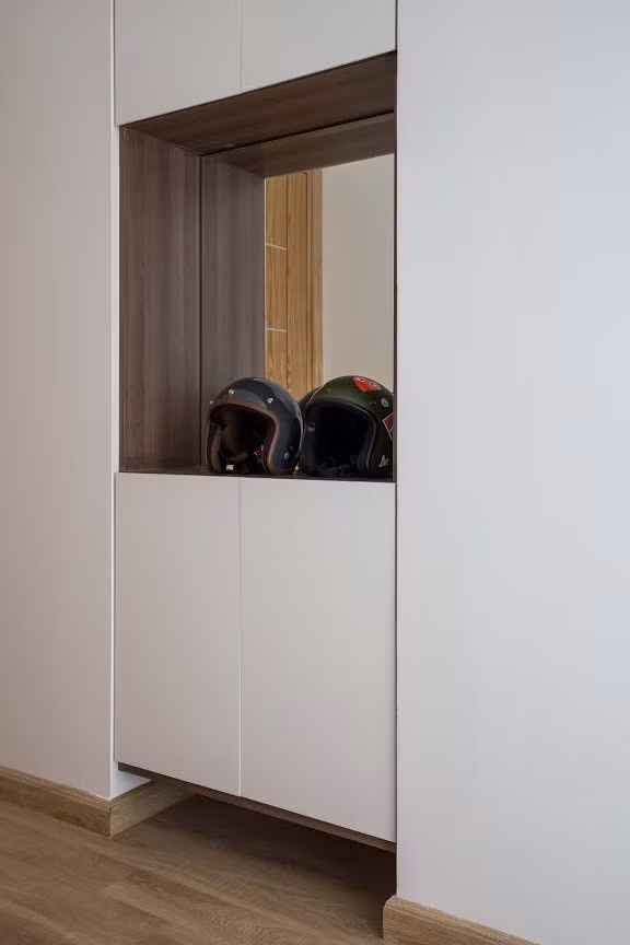 Hầu hết các mảng tủ trong nhà đều được thiết kế phẳng, không có tay nắm để tránh cảm giác nhà có quá nhiều tủ đồ.