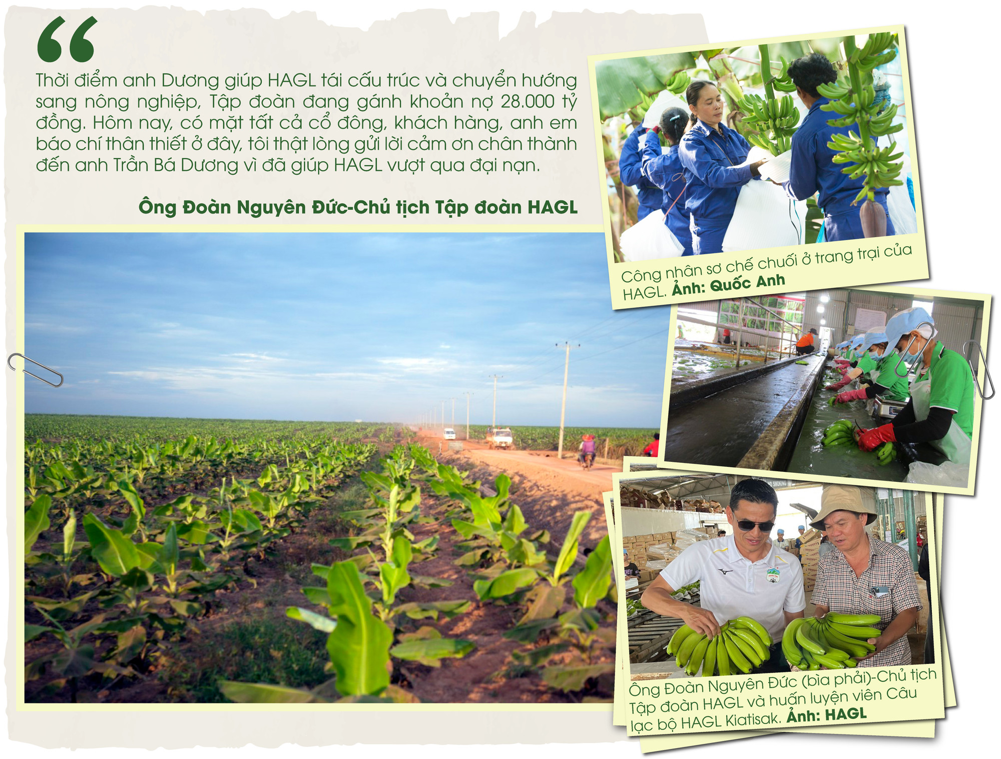 Sau khi lách qua khe cửa hẹp, HAGL đã tái cấu trúc theo hướng chuyển đổi mục đích sử dụng đất, từ trồng cọ dầu, cao su sang trồng mía, ớt, chanh dây, chuối… để lấy ngắn nuôi dài. Tuy nhiên, giai đoạn này không có một ngân hàng nào cho vay nên HAGL phải sống “lay lắt” trong thời gian 6 năm. Năm 2018, Chủ tịch Tập đoàn Trường Hải (THACO) Trần Bá Dương gặp bầu Đức và đồng ý giúp HAGL để cùng làm nông nghiệp. “Thời điểm anh Dương giúp HAGL tái cấu trúc và chuyển hướng sang nông nghiệp, Tập đoàn đang gánh khoản nợ 28.000 tỷ đồng. Hôm nay, có mặt tất cả cổ đông, khách hàng, anh em báo chí thân thiết ở đây, tôi thật lòng gửi lời cảm ơn chân thành đến anh Trần Bá Dương vì đã giúp HAGL vượt qua đại nạn”-ông Đức trải lòng.