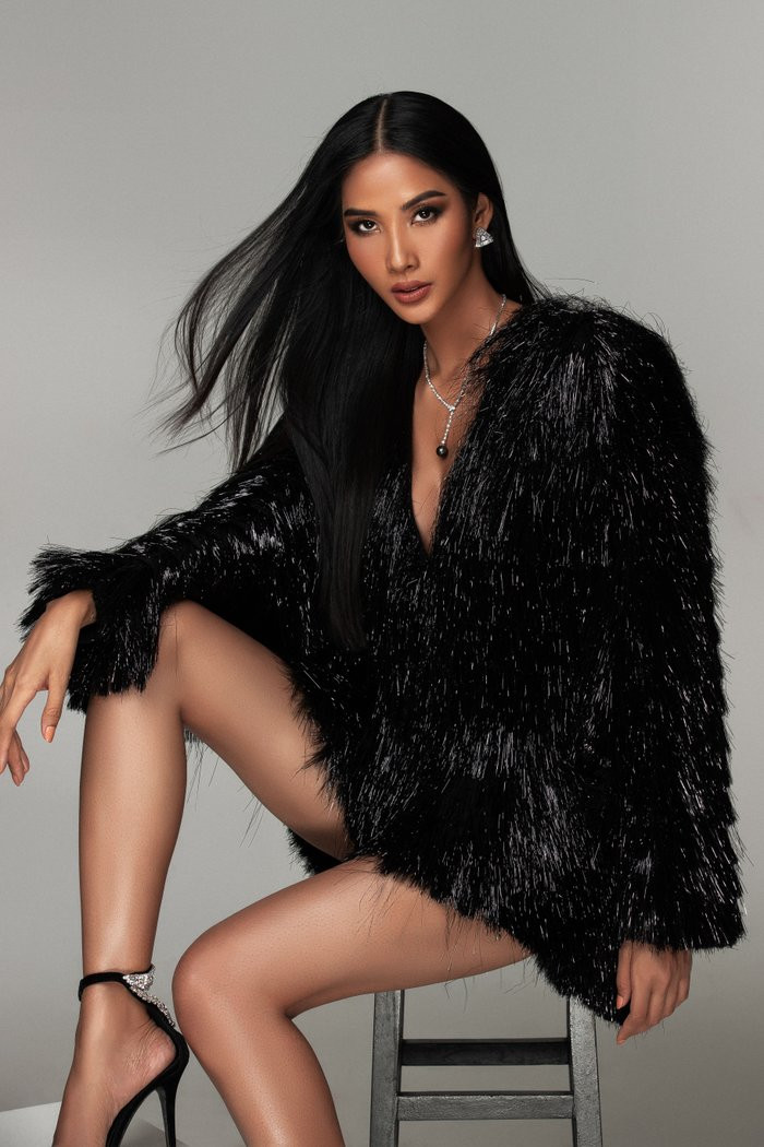 Bộ ảnh được thực hiện ngay khi có thông tin Mỹ là địa điểm đăng cai Hoa hậu Hoàn vũ năm nay. Trong trang phục đen quyền lực, Hoàng Thùy thể hiện thần thái cá tính, cực chất nhưng không kém phần quyến rũ, gợi cảm.