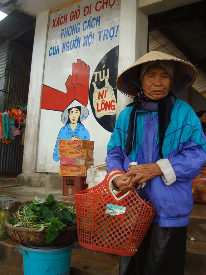 Thế rồi, đến một lúc, làn nhựa mất hút, đi chợ tay không, ra chợ đã có túi ni lông. Thượng vàng hạ cám đều có túi ni lông.