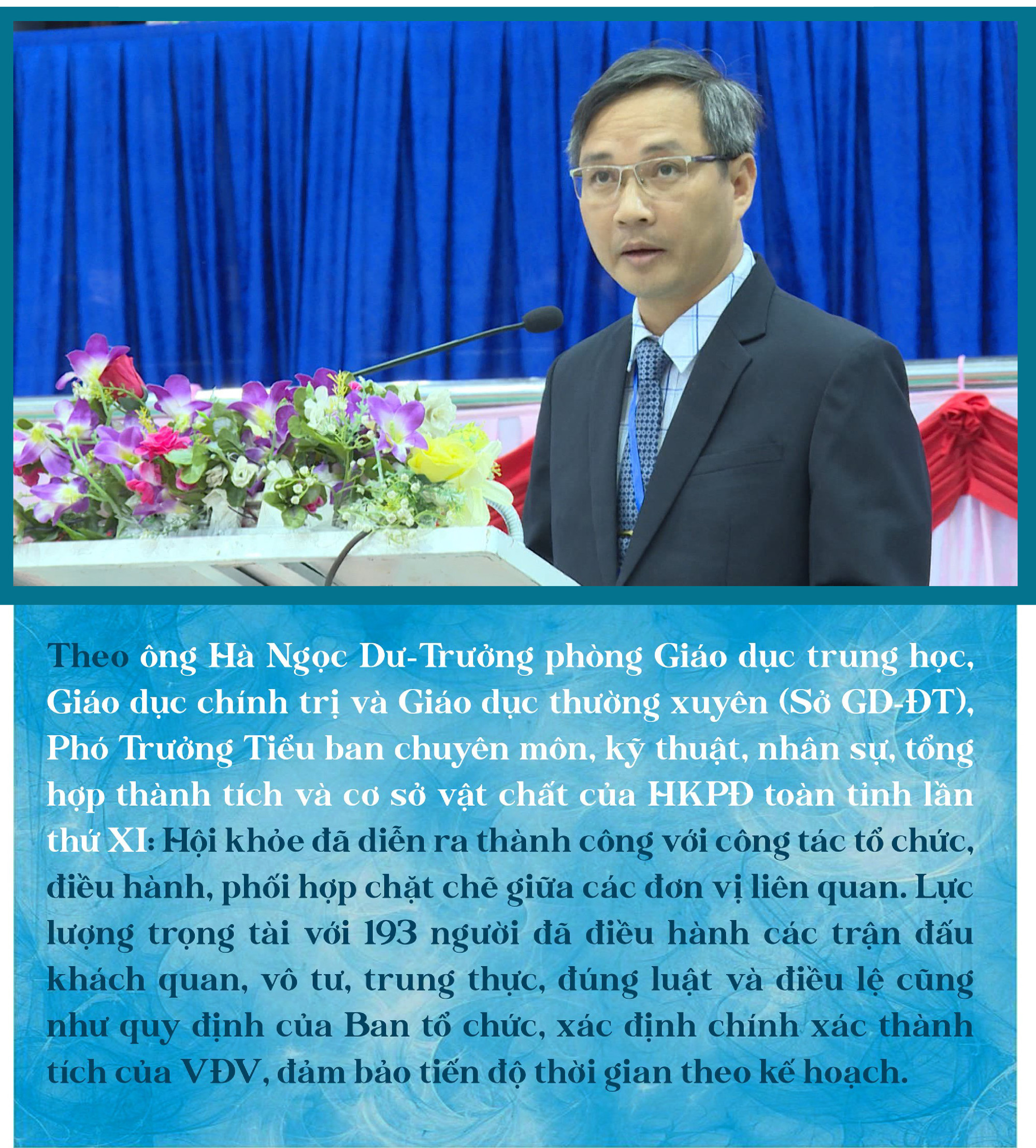 “Các đơn vị đã thực hiện tốt công tác tuyển chọn và tập luyện cho các em học sinh có năng khiếu, có thành tích thể thao cao để tham gia HKPĐ toàn tỉnh. Với sự chuẩn bị chu đáo về chuyên môn, các VĐV đã thi đấu rất quyết tâm, tự tin, xử lý tình huống nhanh nhạy, trình độ kỹ thuật được nâng lên, thành tích cao hơn, tiến bộ hơn so với HKPĐ năm 2019. Đặc biệt, nhiều kỷ lục đã được xác lập ở các môn thi đấu”-ông Dư cho biết.