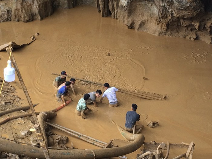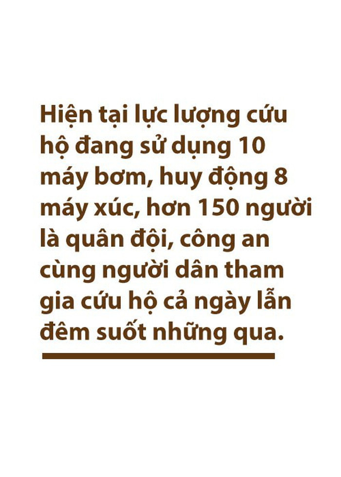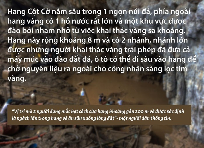 Hàng trăm người và khối lượng lớn máy móc được huy động đến hiện trường nhưng do thời tiết xấu, cùng địa hình hiểm trở khiến cho công tác cứu hộ khó khăn bội phần. Đã 5 ngày trôi qua, tung tích 2 phu vàng bị kẹt trong hang sâu vẫn bặt vô âm tín.