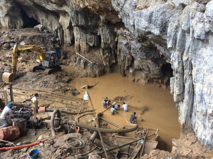 Khu vực cửa hang là núi đá tự nhiên nên không thể mở rộng. Trong khi đó địa hình quanh khu vực mỏ vàng là vùng trũng, việc khơi thông dòng chảy sau khi hút bơm bùn nước ra ngoài cũng thường xuyên bị ùn tắc.