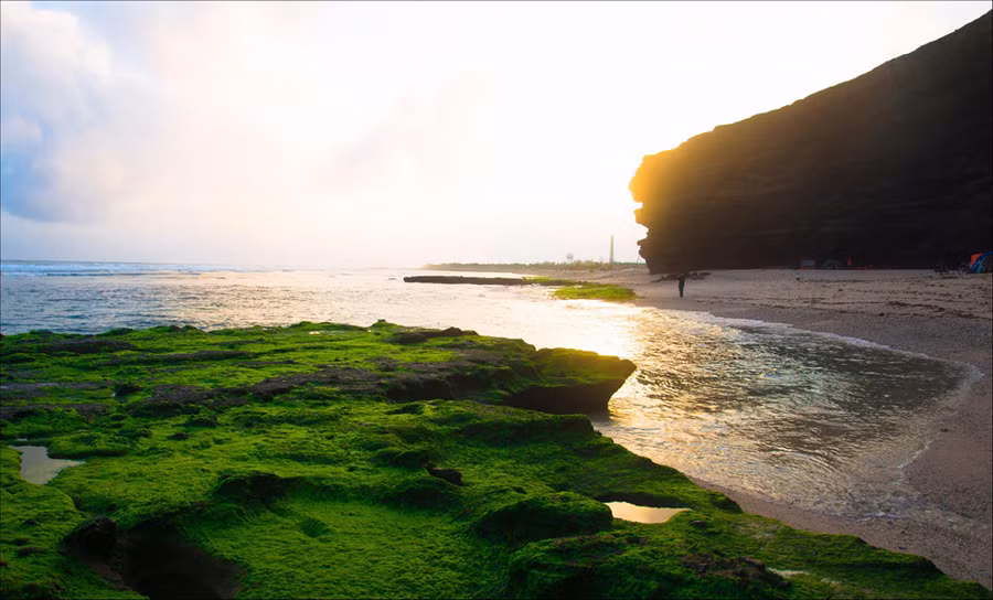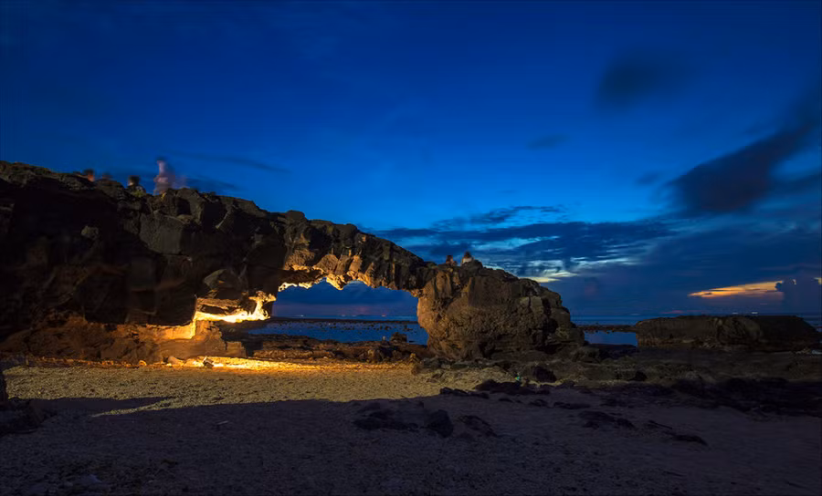 Điểm check-in nổi tiếng nhất Lý Sơn là cổng tò vò - một vòm cổng bằng đá cao khoảng 2,5 m, tuyệt tác kiến tạo địa chất của tự nhiên. Theo các nhà khoa học, cổng tò vò được hình thành từ nham thạch do hoạt động của núi lửa trên hòn đảo trước kia. Đây cũng là nơi đón bình minh và hoàng hôn lý tưởng ở Lý Sơn.