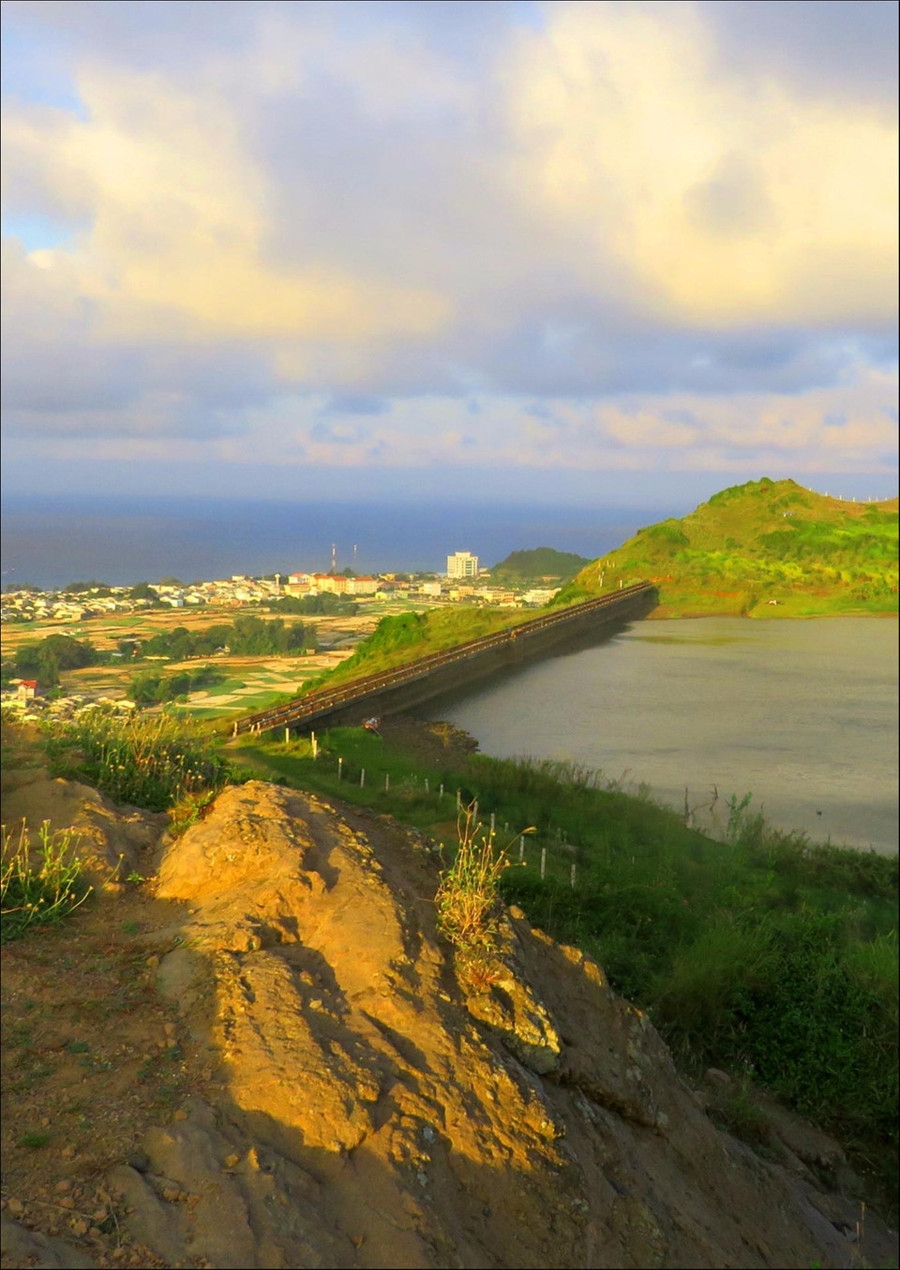 Một góc đảo Lý Sơn xinh đẹp, một bên là núi non hùng vĩ, một bên là sóng vỗ dập dồn, xa xa là ngọn cờ khẳng định chủ quyền thiêng liêng của Tổ quốc.