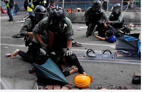 Cảnh sát bắt giữ người biểu tình tại Hồng Kông hôm 18-11. Ảnh: Reuters
