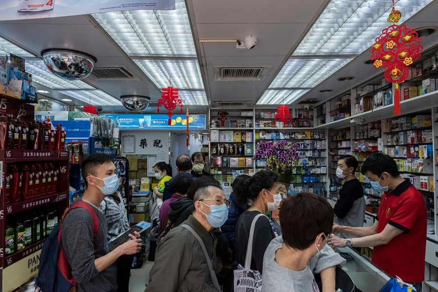 Một hiệu thuốc ở Hong Kong ngày 25.2. Ảnh: NYT