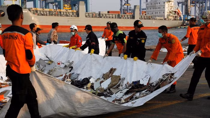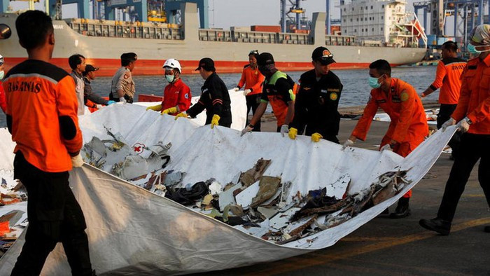 Những phần còn lại của chuyến bay JT610 - Ảnh: Reuters