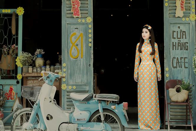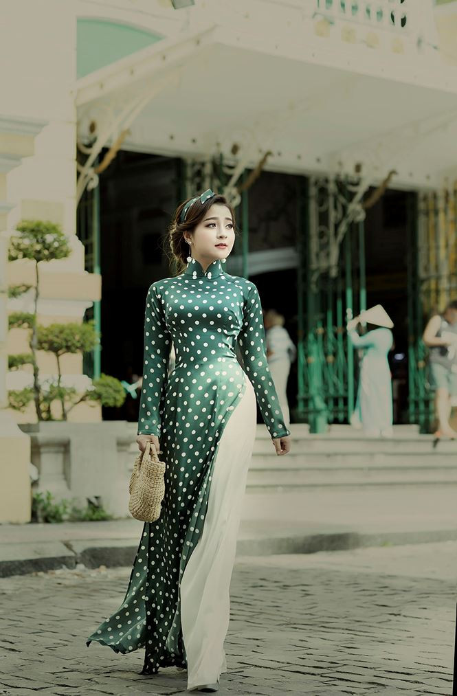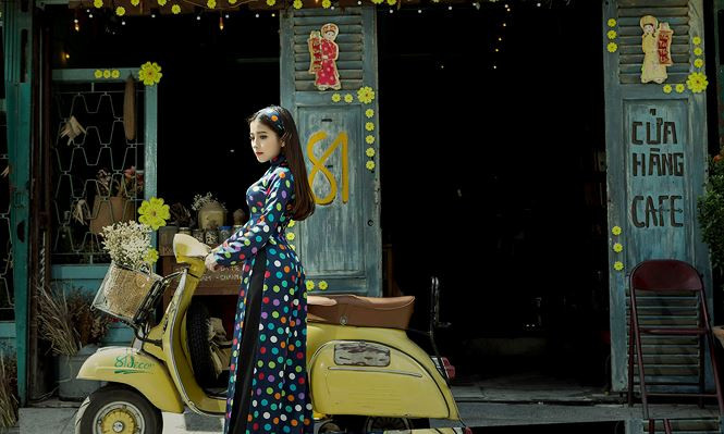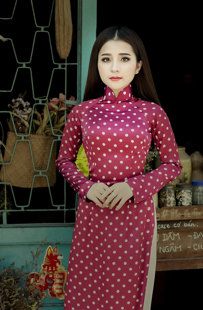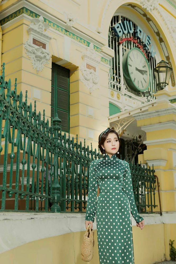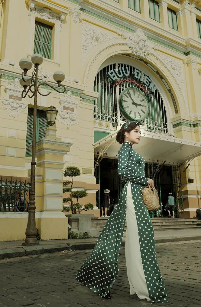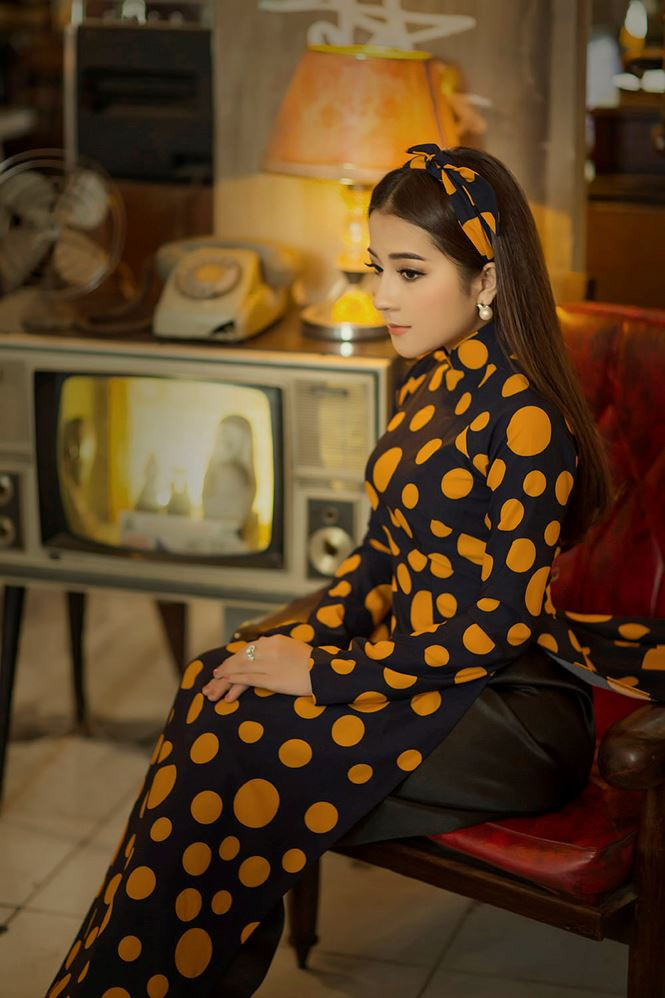 Trong bộ ảnh đón Xuân, Ngọc Ánh hoá thân thành 'Cô ba Sài Gòn' với bộ sưu tập áo dài hoạ tiết chấm bi cổ điển của NTK Linh Bùi.