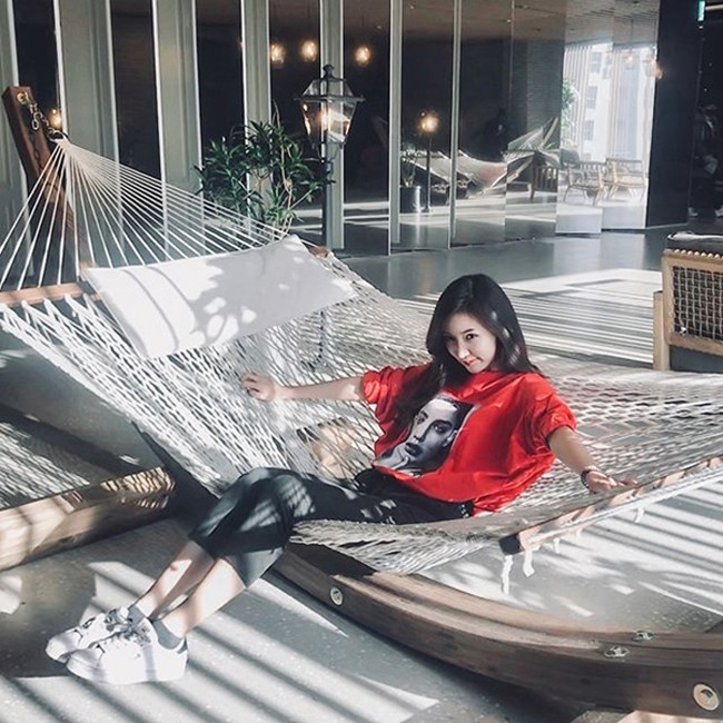Với đôi chân thon dài nên Panda Fonnapha cũng khá chăm diện quần shorts hoặc chân váy nhằm tôn được lợi thế về vóc dáng.