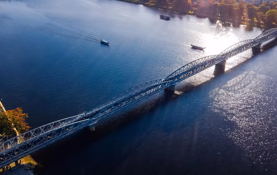 Cầu Trường Tiền: Huế cổ kính nhưng không xưa cũ. Một phần khác của đất cố đô vẫn đang tiếp tục chuyển mình phát triển, lớn mạnh. Cầu Trường Tiền trở thành một trong những biểu tượng của xứ Huế, niềm tự hào của người dân cố đô. Hình ảnh cây cầu trầm mặc bắc qua dòng Hương đã khiến không ít người mê mẩn, đắm say.