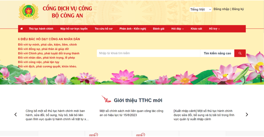Bước 1: Truy cập Cổng dịch vụ công Bộ Công an.
