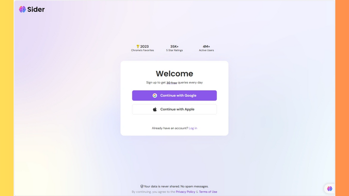 Bước 2: Sau khi tải hoàn tất, ở góc dưới bên phải màn hình sẽ có biểu tượng của Sider, bạn chọn vào đó để tiếp tục sử dụng > Bạn đăng nhập vào Sider bằng tài khoản Google hoặc tài khoản Apple để tiếp tục sử dụng.