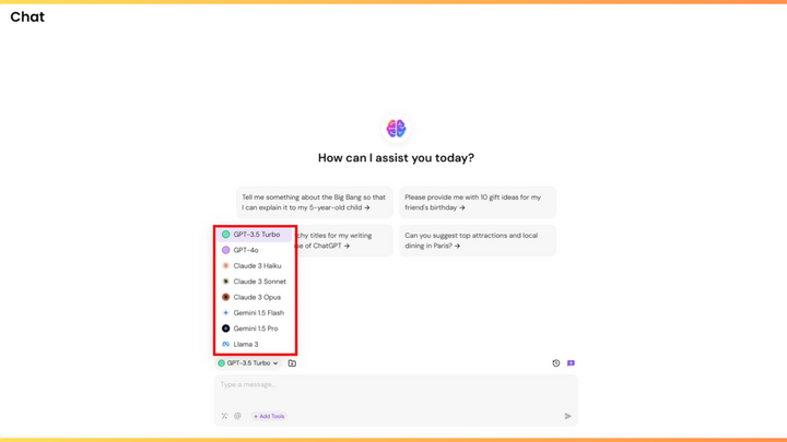 Bước 3: Bạn có thể tìm kiếm thông tin, trường hợp muốn đổi công cụ AI phù hợp, bạn chọn vào biểu tượng AI đang dùng và chọn vào công cụ bạn muốn là được nhé.