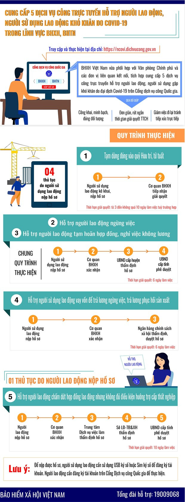 | Các dịch vụ công do Bảo hiểm xã hội Việt Nam cung cấp trên dịch vụ công hỗ trợ các đối tượng gặp khó khăn do đại dịch COVID-19. Ảnh: PV/Vietnam+ |