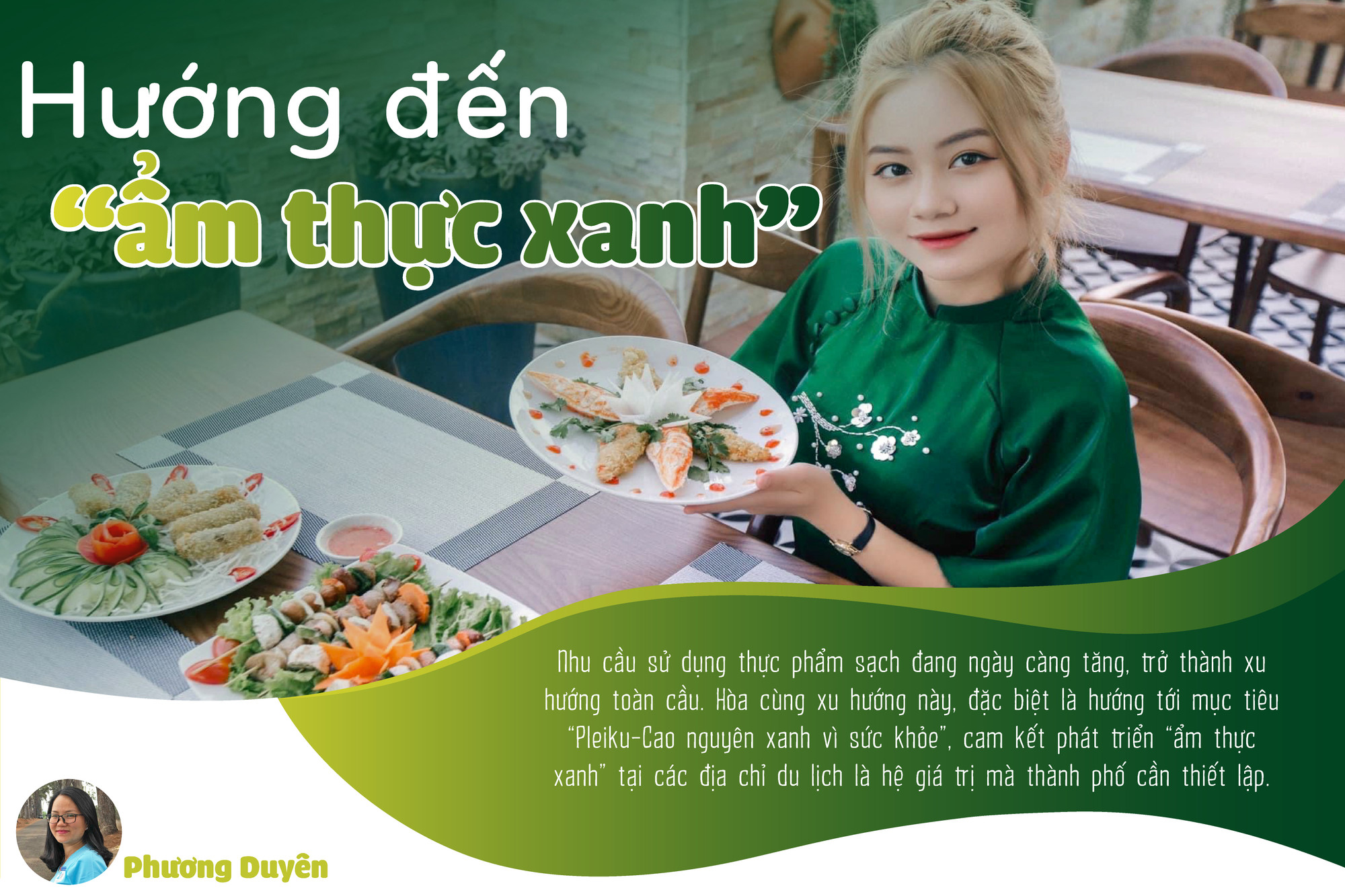 “Ẩm thực xanh” là sử dụng các loại thực phẩm có nguồn gốc hữu cơ, đảm bảo an toàn sức khỏe cho thực khách nói chung và khách du lịch nói riêng. Điều này càng thêm ý nghĩa khi ẩm thực đang tạo ra sức hút ngày một lớn, trở thành một trong những tiêu chí khách du lịch cân nhắc, lựa chọn khi đến với một địa phương. Tuy nhiên, tại Pleiku, những nhà hàng, quán ăn theo đuổi mục tiêu này còn khá hiếm hoi.