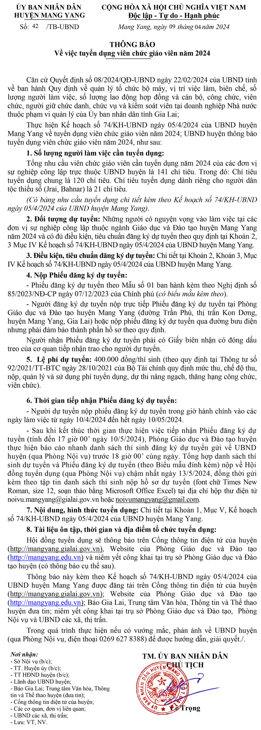 >> Bảng nhu cầu tuyển dụng viên chức giáo viên năm 2024 dành riêng cho người dân tộc thiểu số (Jrai, Bahnar)