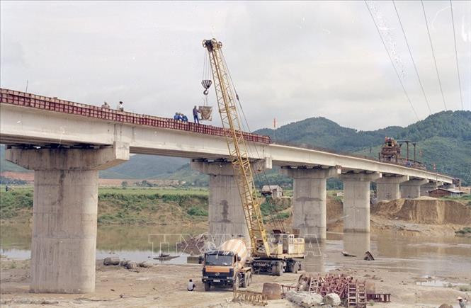 Cầu Ngàn Phố bắc qua sông Ngàn Phố, huyện Hương Sơn (Hà Tĩnh), 1 trong 4 cây cầu lớn trên tuyến đường Hồ Chí Minh từ km 356 Khe Cò đến km 415+300 Hương Khê, dài 60 km, do Công ty Cầu 12 xây dựng. Ảnh: Đình Na/TTXVN