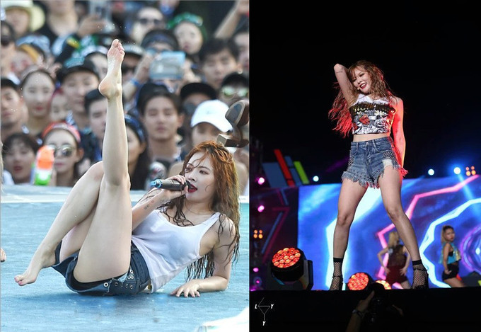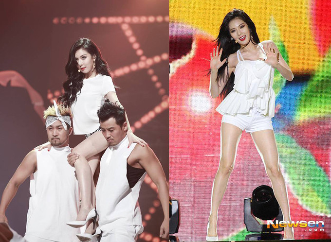 HuynA thường diện quần siêu ngắn hoặc váy bó sát trong những màn vũ đạo.