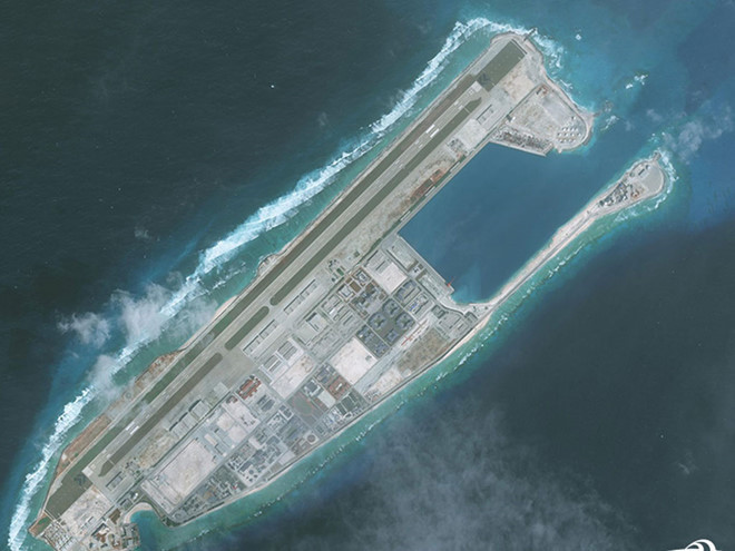 Trung Quốc hồi tháng 4 ngang ngược đặt cái gọi là chính quyền cấp quận trên đá Chữ Thập trong quần đảo Trường Sa thuộc chủ quyền Việt Nam. Ảnh: AMTI/CSIS