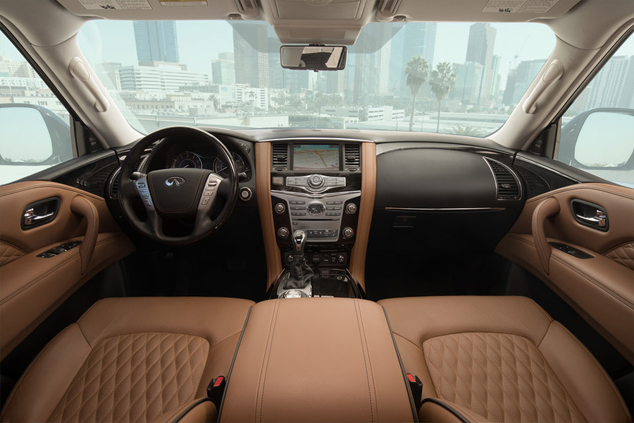 Bố cục sắp xếp ghế ngồi của Infiniti QX80 dạng 2-2-3, chứ không phải dạng 2-3-3 như thông thường. Do hàng ghế thứ 2 đặt bệ tì tay lớn ở trung tâm. Màn hình giải trí tăng kích thước lên 8 inch, độ phân giải cao hơn và hỗ trợ 31 ngôn ngữ khác nhau.