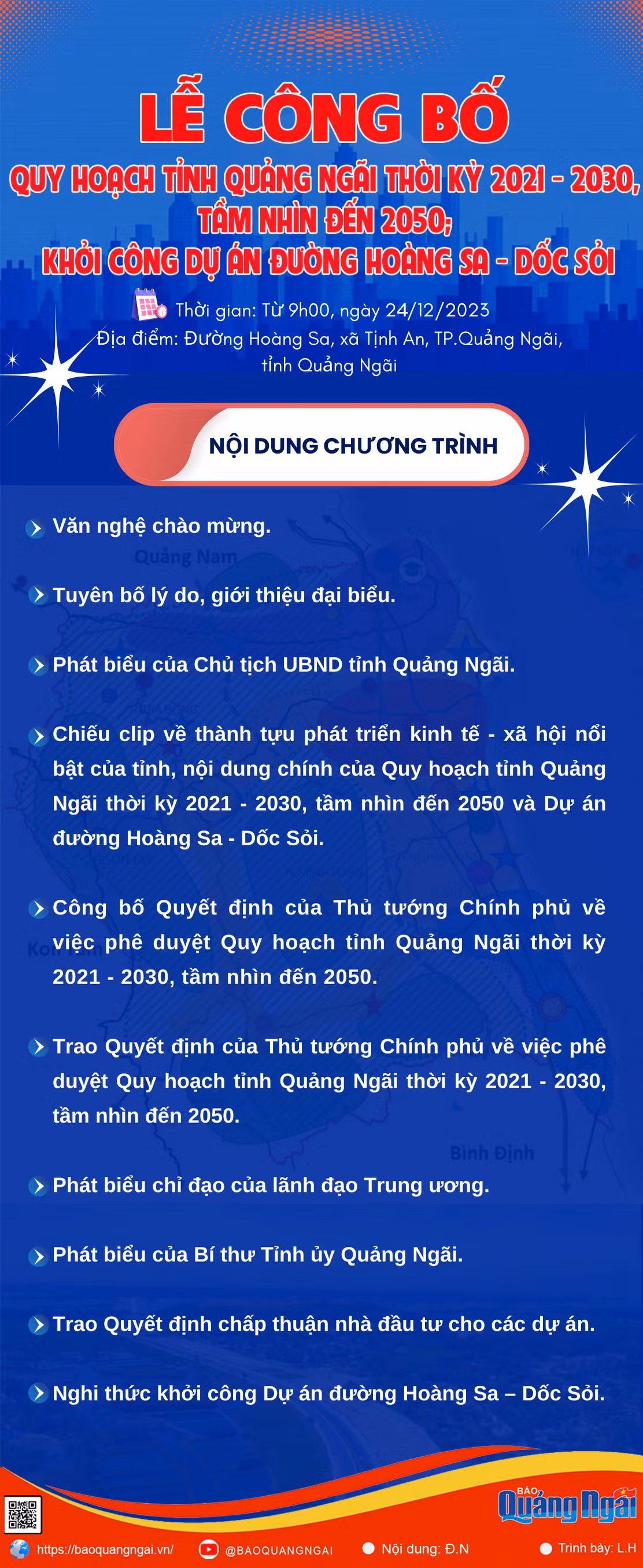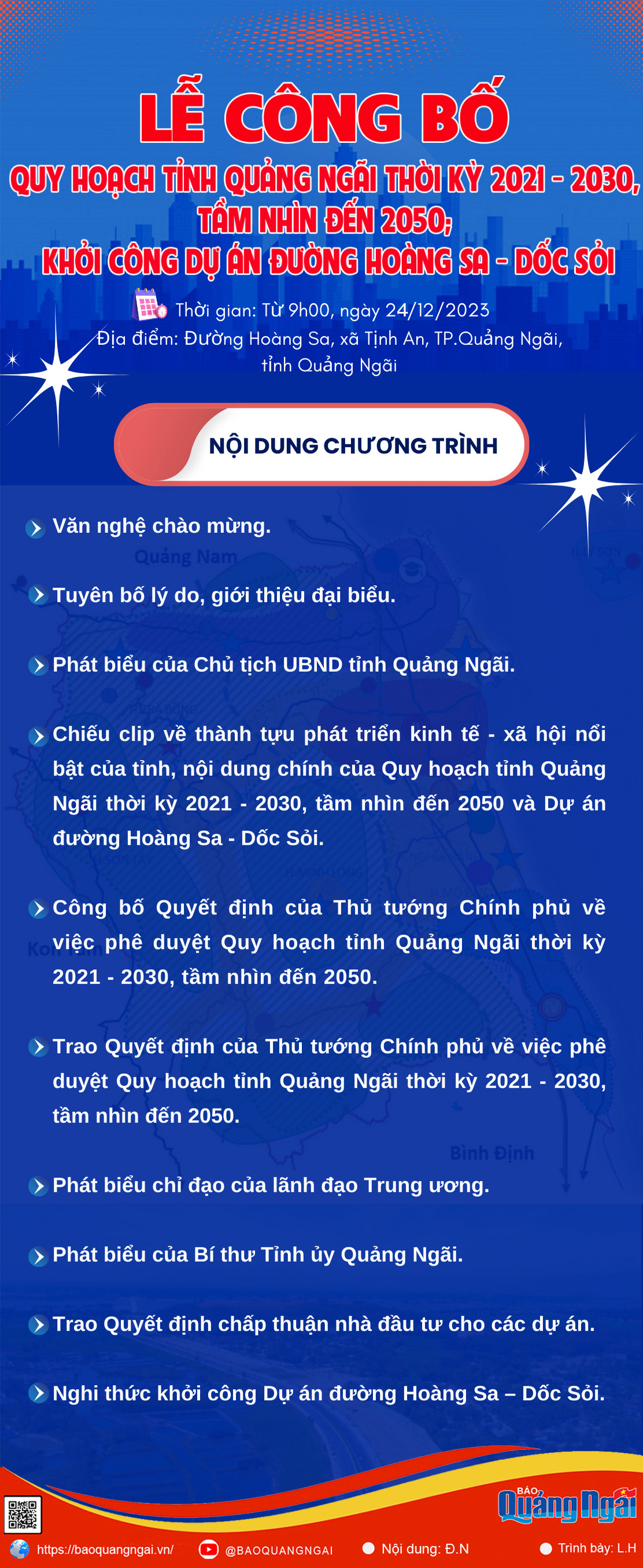 Infographic [Infographic]. Lễ công bố Quy hoạch tỉnh Quảng Ngãi thời kỳ 2021 - 2030, tầm nhìn đến 2050; khởi công dự án đường Hoàng Sa - Dốc Sỏi