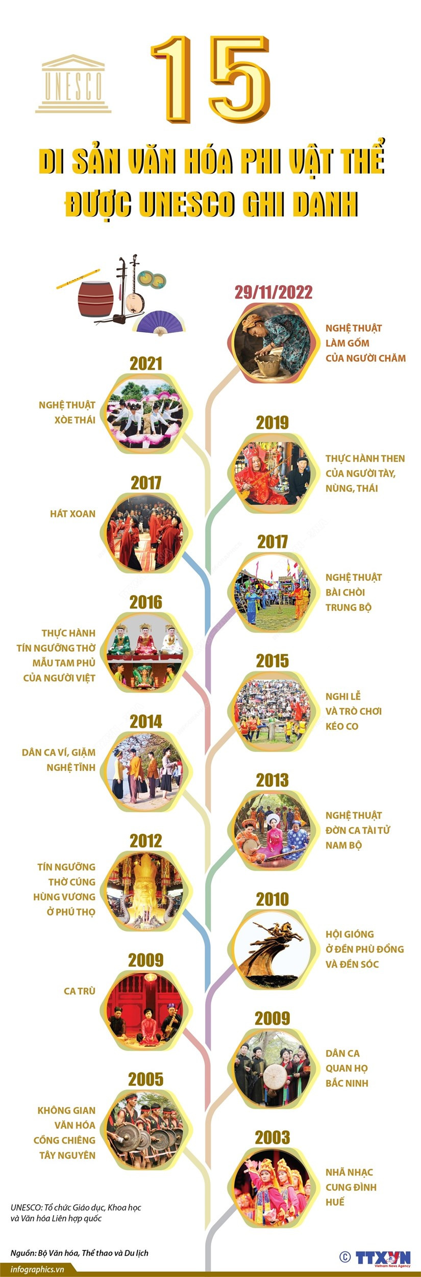 Như vậy, Nghệ thuật làm gốm của người Chăm là di sản văn hóa phi vật thể thứ 15 của Việt Nam được ghi danh vào các Danh sách của UNESCO.