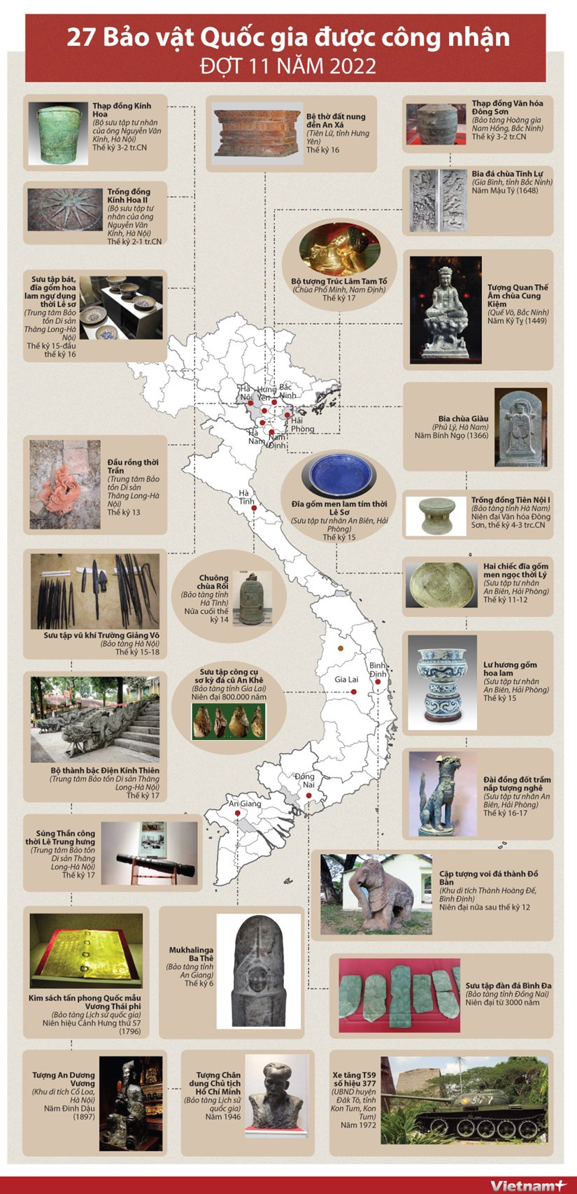 Danh sách 27 bảo vật quốc gia (đợt 11, năm 2022) được Phó Thủ tướng Trần Hồng Hà ký Quyết định công nhận số 41/QĐ-TTg ngày 30/1/2023.