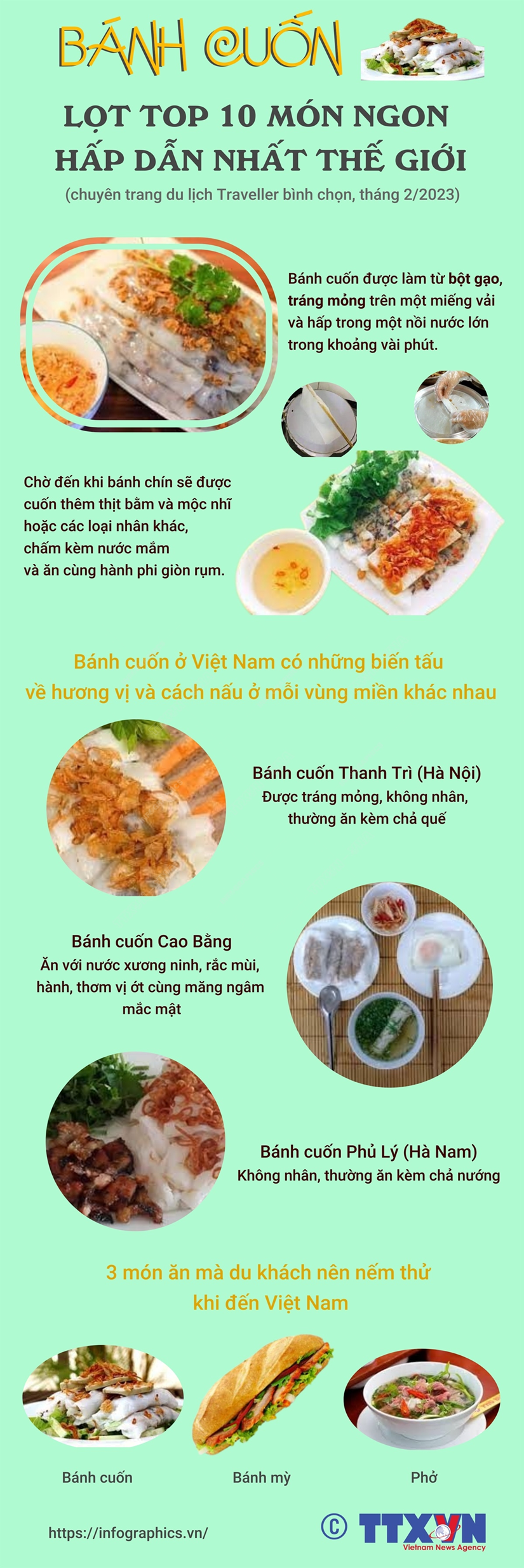 Traveller - chuyên trang du lịch nổi tiếng của Australia, đã đưa món bánh cuốn Việt Nam vào top 10 những món ngon hấp dẫn nhất thế giới và khuyến khích các du khách nên thử.