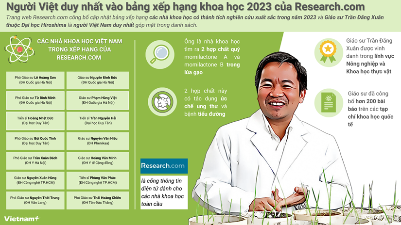 Giáo sư Trần Đăng Xuân là người nước ngoài duy nhất trong số 78 nhà khoa học của Đại học Hiroshima nằm trong danh sách các nhà khoa học có thành tích xuất sắc trong nghiên cứu năm 2023 mà Research.com vừa công bố cập nhật.