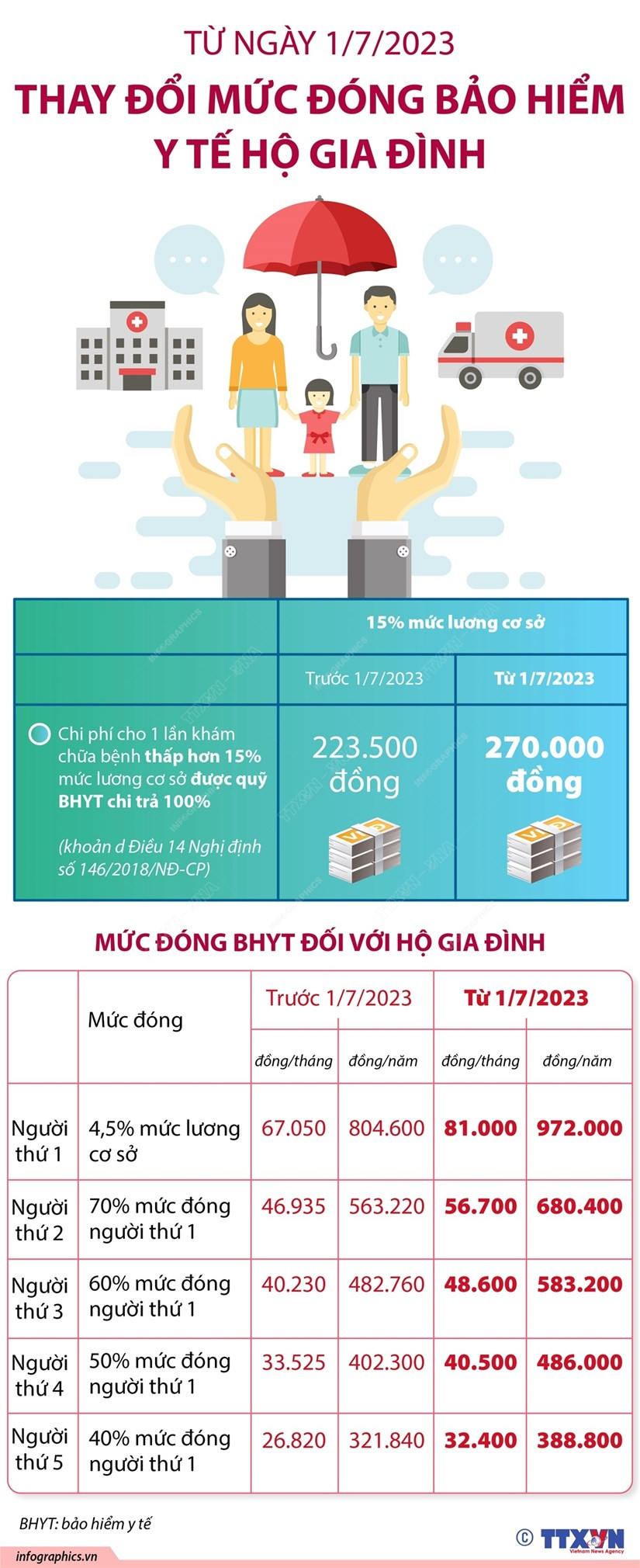 [Infographics] Thay đổi mức đóng bảo hiểm y tế hộ gia đình từ 1/7
