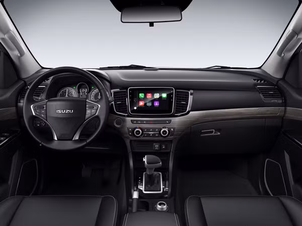 Trong khi vẻ ngoài không khác nhiều so với phiên bản cũ, thì bên trong nội thất lại là câu chuyện khác. Isuzu mu-X 2018 sở hữu bảng điều khiển trung tâm hoàn toàn mới. Màn hình cảm ứng 8 inch giống máy tính bảng đặt chính giữa, hỗ trợ Apple CarPlay, kết nối Carlife của Baidu, cùng với hàng loạt tính năng giải trí khác.
