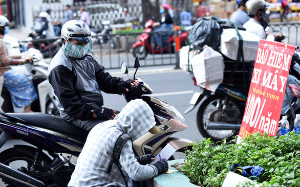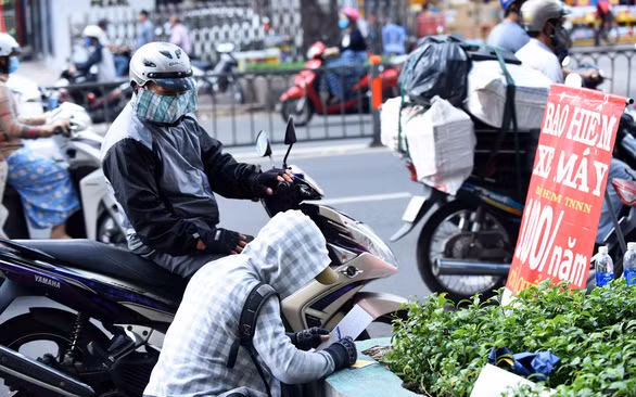 Người dân TP.HCM ùn ùn đi mua bảo hiểm xe máy lề đường - Ảnh: DUYÊN PHAN