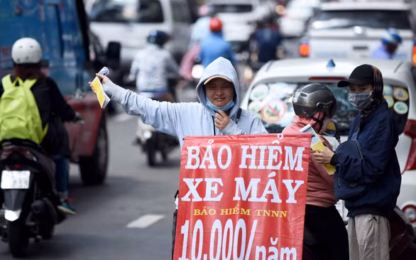 Bảo hiểm xe máy bày bán trên đường 3-2 TP.HCM - Ảnh: DUYÊN PHAN