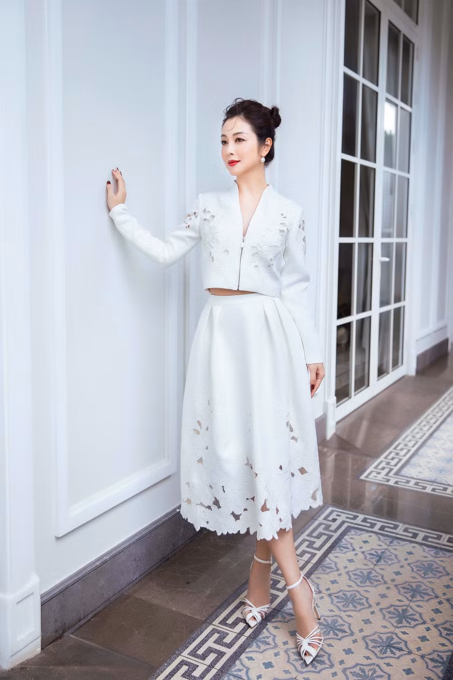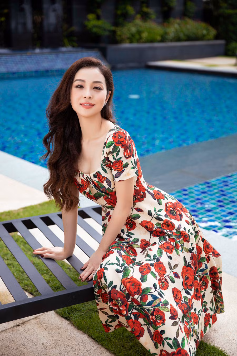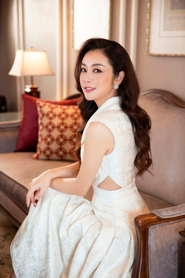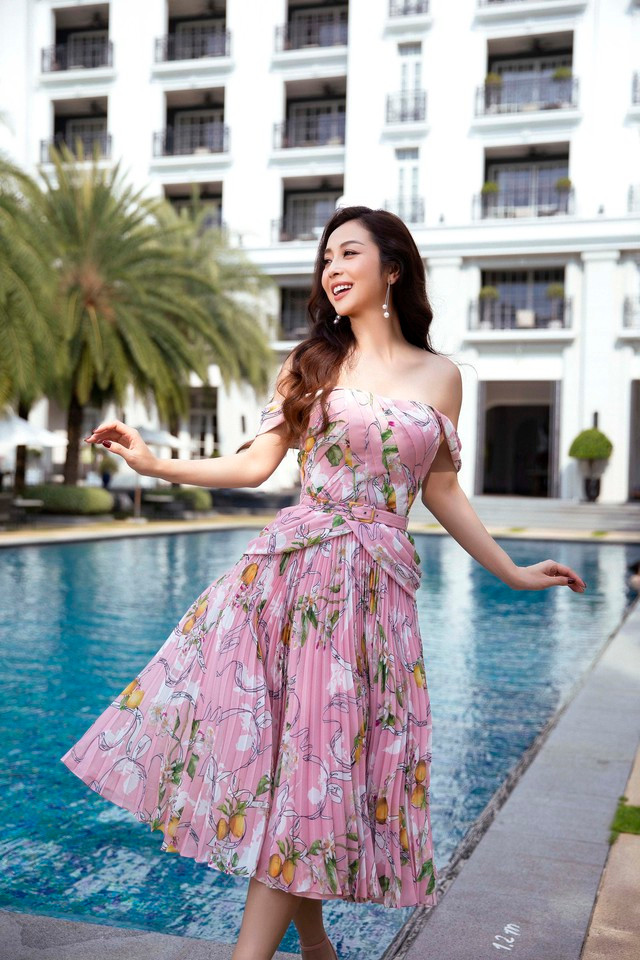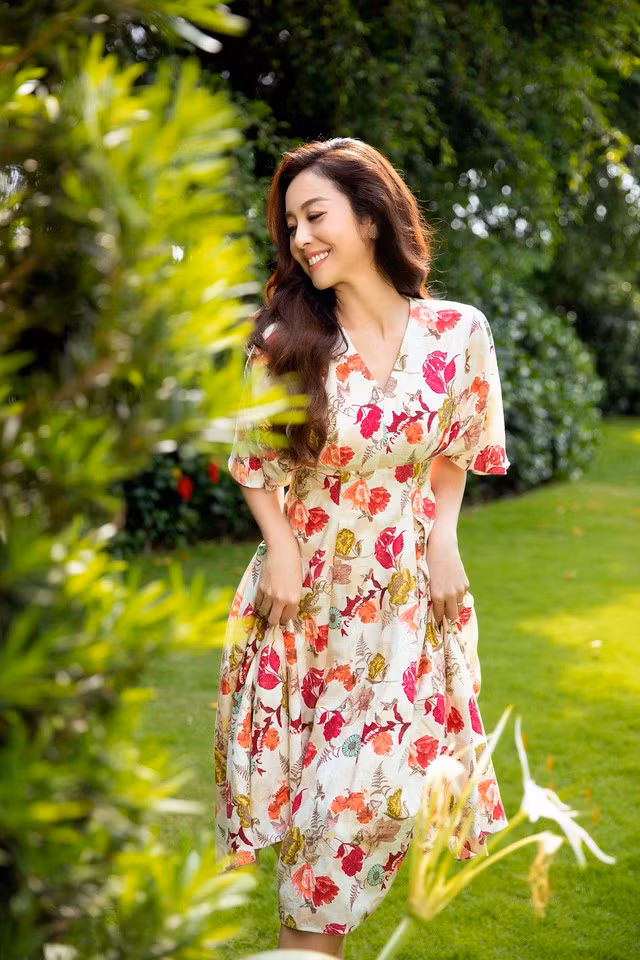 Người đẹp 8X biến hóa từ hình ảnh trẻ trung khi diện váy hoa maxi cho đến nét quý phái khi chụp cùng đầm dự tiệc sang trọng.