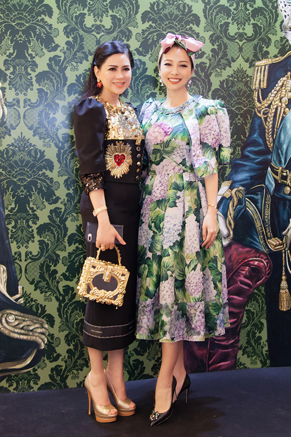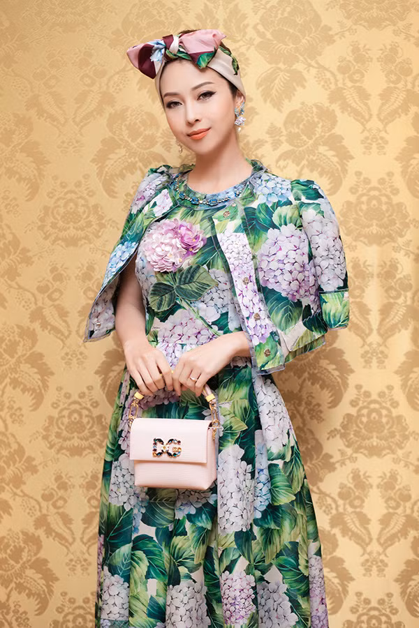 Đến sự kiện với vai trò MC, Jennifer Phạm chọn bộ váy hoa cẩm tú cầu theo phong cách cổ điển kèm áo choàng.