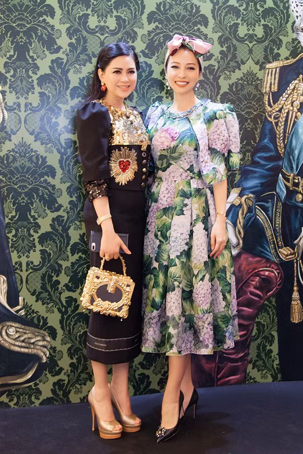 Hoa hậu Hải Dương toát lên vẻ thanh lịch với cả bộ họa tiết hoa phối cùng giày gót nhọn cổ điển.