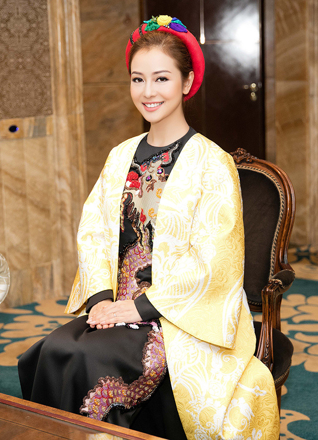 Áo dài Jennifer Phạm mặc do nhà thiết kế Thủy Nguyễn thực hiện riêng cho cô.