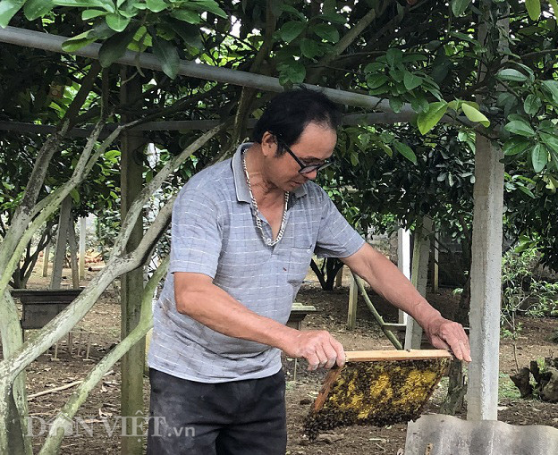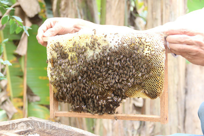 | Nhờ ham mê thích thú nghề nuôi ong và chịu khó học hỏi qua sách báo rồi đúc rút kinh nghiệm thực tế, ông Phong đã giàu lên từ nuôi ong, mỗi năm thu lãi hàng trăm triệu đồng. |