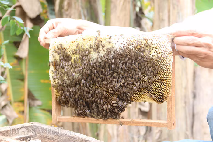 Chia sẻ với PV Dân Việt về kinh nghiệm nuôi ong mật, ông Trần Đình Phong cho biết: "Tôi đến với nghề nuôi ong mật vì đây là công việc mang lại nhiều lợi ích, đầu ra cho sản phẩm mật cao và ổn định. Khi nuôi ong thu được nguồn mật sạch còn giúp cây cối trong vườn gia đình tôi thụ phấn tốt, đơm hoa, kết trái nhiều hơn. Nuôi ong, công sức và thời gian chỉ bằng nửa làm rẫy và ít hao phí sức lực nhưng lại đòi hỏi sự khéo léo, chăm bẵm ong như trẻ nhỏ...".