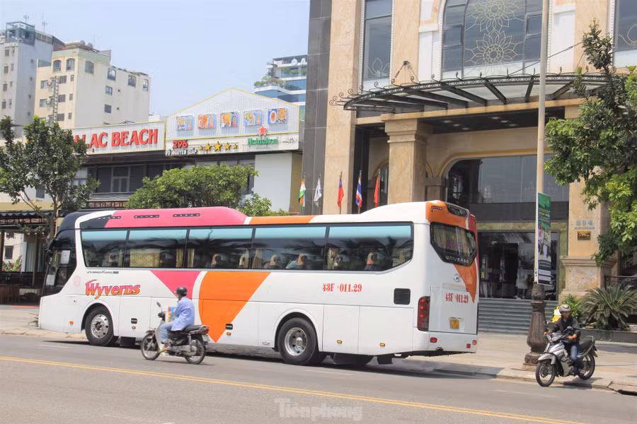 | Xe khách liên tục tới các khách sạn đưa đón du khách. Các tuyến đường ven biển là nơi quy tụ nhiều khách sạn nhất Đà Nẵng, trong đó có nhiều khách sạn 4, 5 sao, thường xuyên đón các đoàn khách quốc tế. |