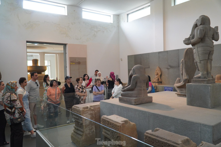 | Từng đoàn khách nối nhau vào thăm Bảo tàng Điêu khắc Chăm, hầu hết là khách quốc tế. Ảnh: Thanh Hiền. |