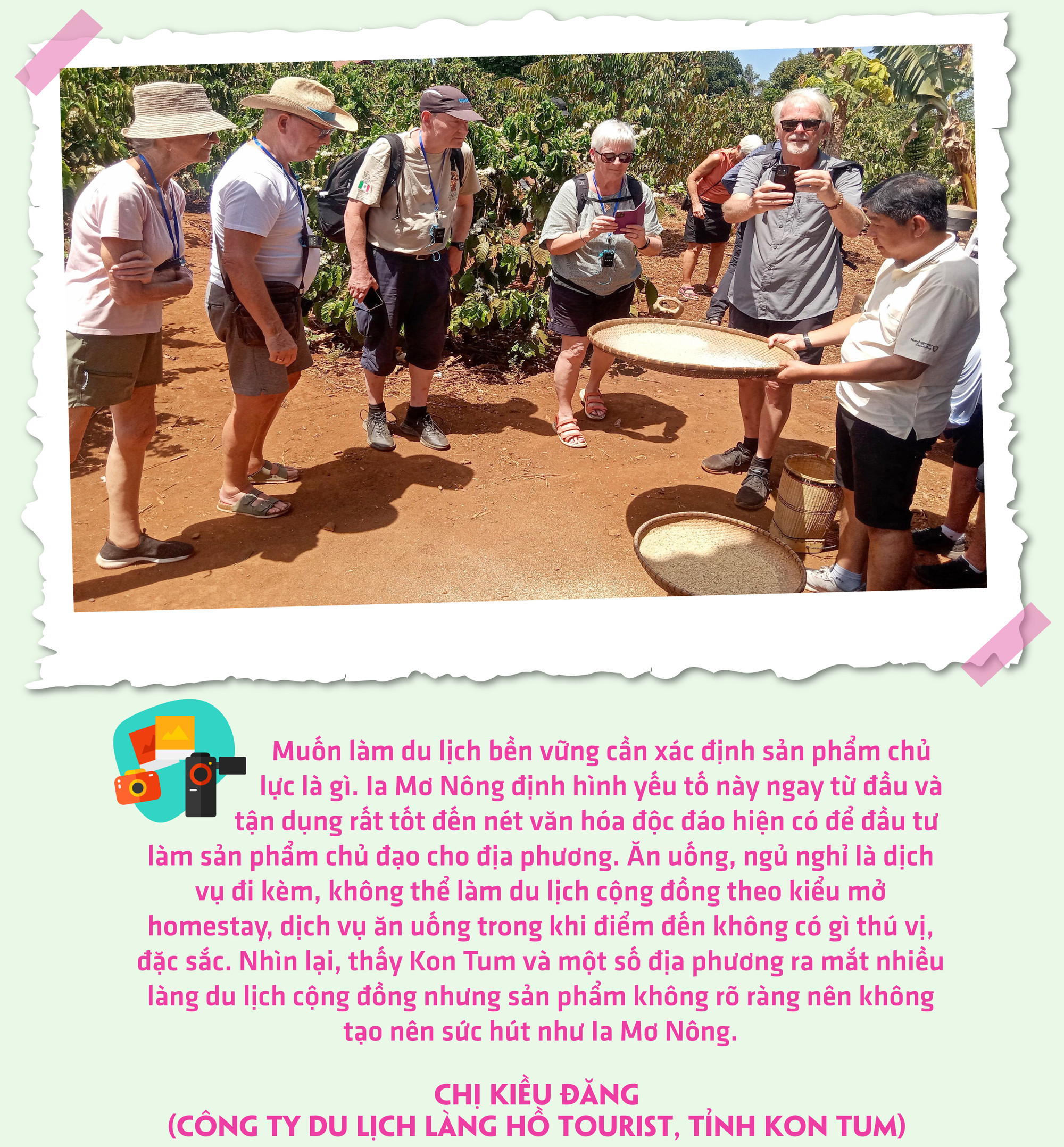 Từng đưa khách quốc tế trải nghiệm du lịch cộng đồng tại xã Ia Mơ Nông, chị Kiều Đăng (Công ty Du lịch Làng Hồ Tourist, tỉnh Kon Tum) kể: Chị từng có suy nghĩ đây là địa điểm khó làm du lịch vì nhiều yếu tố. Nhưng nhìn lượng khách Âu-Á đến đều thời gian gần đây, chị đã có suy nghĩ khác về cách làm du lịch bền vững.