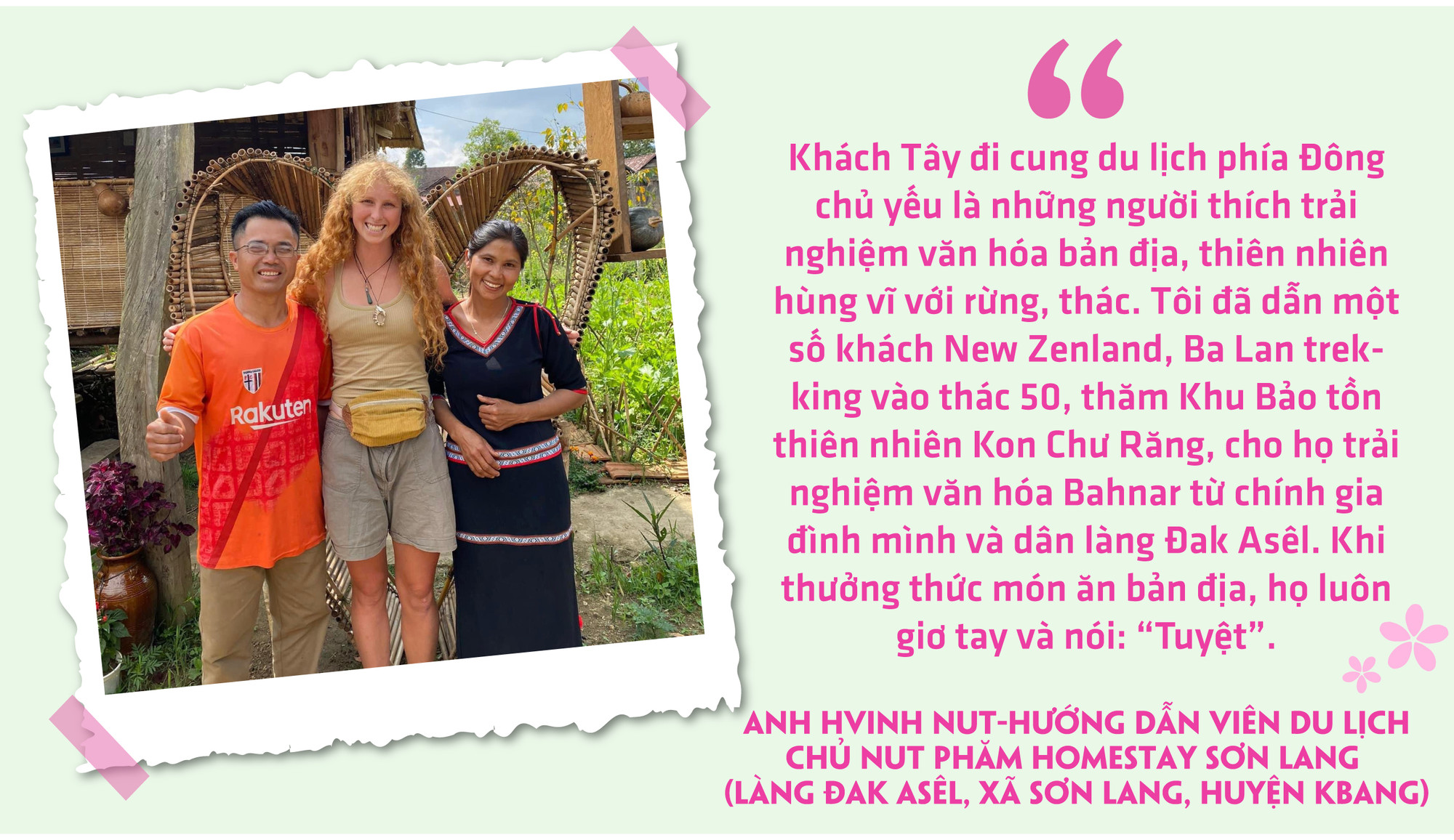 Ở một ngôi làng Bahnar xa xôi, nhưng anh Hvinh Nut-Hướng dẫn viên du lịch, đồng thời là chủ Nut Phăm Homestay Sơn Lang (làng Đak Asêl, xã Sơn Lang, huyện Kbang) cho hay: Thời gian gần đây, anh có cơ hội phục vụ một số khách quốc tế.