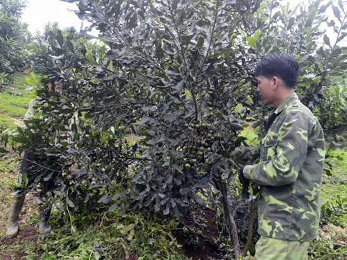 Chăm sóc vườn cây mắc ca tại xã Tà Lèng, TP. Ðiện Biên Phủ, tỉnh Điện Biên. Ảnh: Hà Thuận