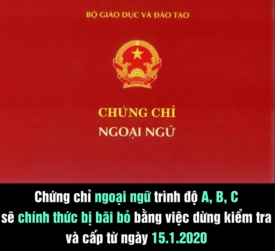 Sau 26 năm tồn tại, chứng chỉ ngoại ngữ trình độ A-B-C đã chính thức bị bãi bỏ bằng việc dừng kiểm tra và cấp từ 15.1.2020.