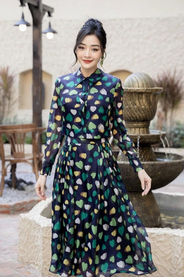 Nổi bật với họa tiết độc đáo, phối màu bắt mắt trên nền chất liệu vải bay bổng, không nhăn và giữ nhiệt tốt kết hợp cùng kiểu dáng thiết kế trẻ trung, thanh lịch, đây chắc chắn là gợi ý phù hợp cho mọi quý cô thời thượng. Với điểm nhấn là cổ áo sơ mi kết hợp với chân váy dáng xòe thông dụng, cộng hưởng tạo nên vẻ đẹp và giá trị thẩm mỹ cho các nàng khi diện trong mọi hoàn cảnh