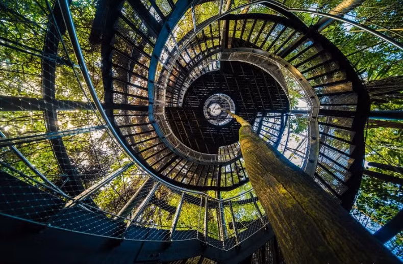 Để kỷ niệm 10 năm rừng nhiệt đới Masoala, Thụy Sĩ, vào năm 2013, Sở thú Zürich đã mở lối đi trên ngọn cây, vì vậy du khách có thể cảm thấy như họ là một phần của rừng rậm khi khám phá các sinh vật bản địa. Nó bao gồm hai tòa tháp bằng thép được bao phủ bằng dây leo và thực vật biểu sinh, và một cây bông gòn mọc ở giữa tòa tháp lớn. Ảnh: DOMINIK GEHL