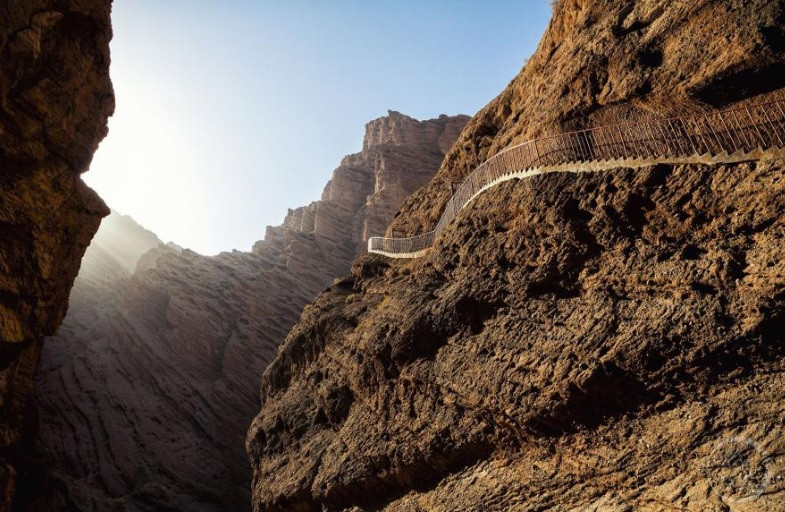 Theo các rãnh tự nhiên của hẻm núi lớn Tianshan, Tân Cương, Trung Quốc, những bậc thang này mang đến cho người leo núi những cảnh quan tuyệt đẹp của những kỳ quan nằm phía dưới. Ảnh: ALEX AW