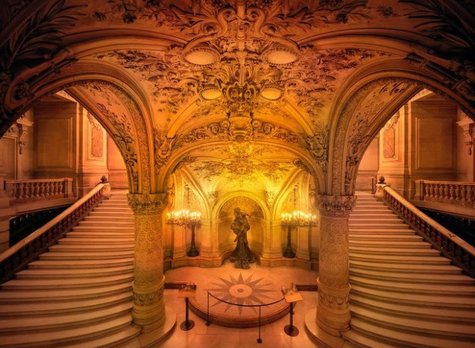 Nằm trong một trong những nhà hát opera nổi tiếng nhất thế giới ở Paris, Pháp, cầu thang của Palais Garnier đẹp sang trọng với những chạm khắc phức tạp và tác phẩm nghệ thuật chi tiết. Ảnh: NGUYỄN THÁI